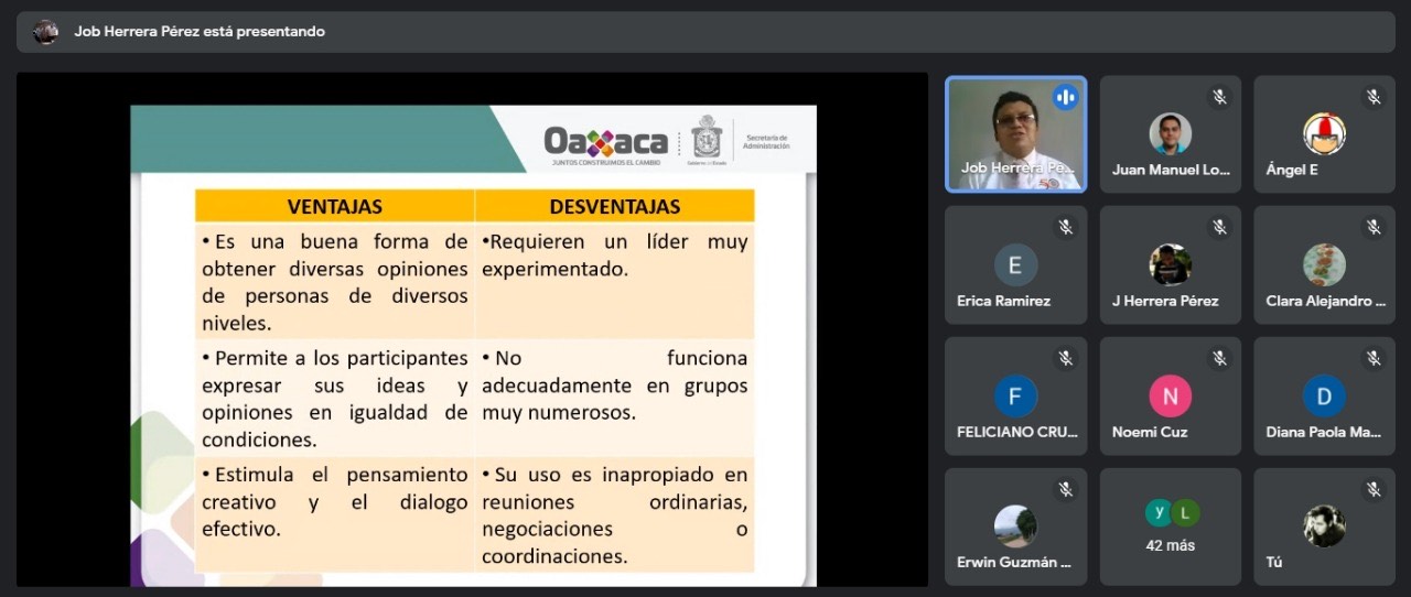 Con la orientación de Job Herrera Pérez, mujeres y hombres participaron en esta capacitación virtual, la cual presentó los conceptos básicos, elementos involucrados en la toma de decisiones, la finalidad de elegir correctamente, así como los diferentes tipos de valoración, con la finalidad de alcanzar el objetivo deseado, tanto en el ambiente laboral como en la vida personal.