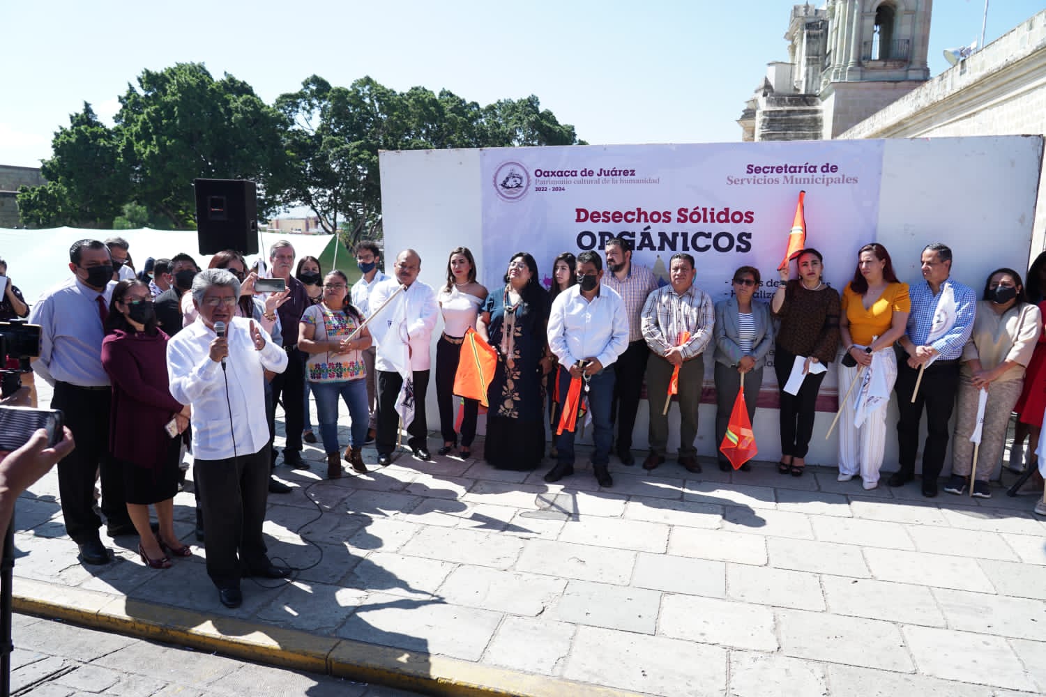 Oaxaca de Juárez, Oax., a 05 de octubre de 2022. El H. Ayuntamiento de Oaxaca de Juárez dio el banderazo de salida de 7 camionetas de 3 toneladas, que serán utilizadas para llevar a cabo el servicio de recolección y traslado de los residuos orgánicos, en las agencias, barrios y colonias del municipio capitalino.