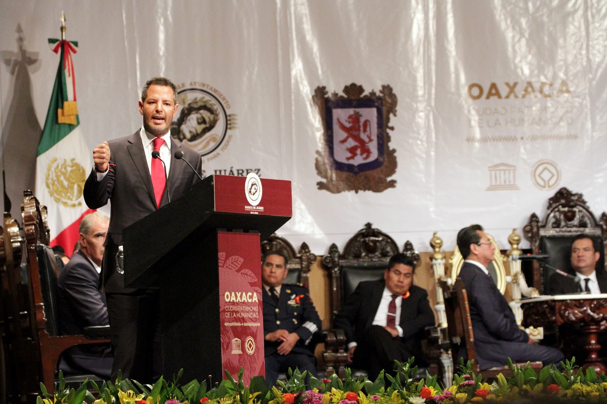Ante el presidente municipal de Oaxaca de Juárez, Oswaldo García Jarquín, el Mandatario Estatal precisó que en esta celebración, la cual es de fiesta y alegría, es importante recordar lo que hace grande a esta tierra y que ha marcado la vida de las y los oaxaqueños, así como de México.
