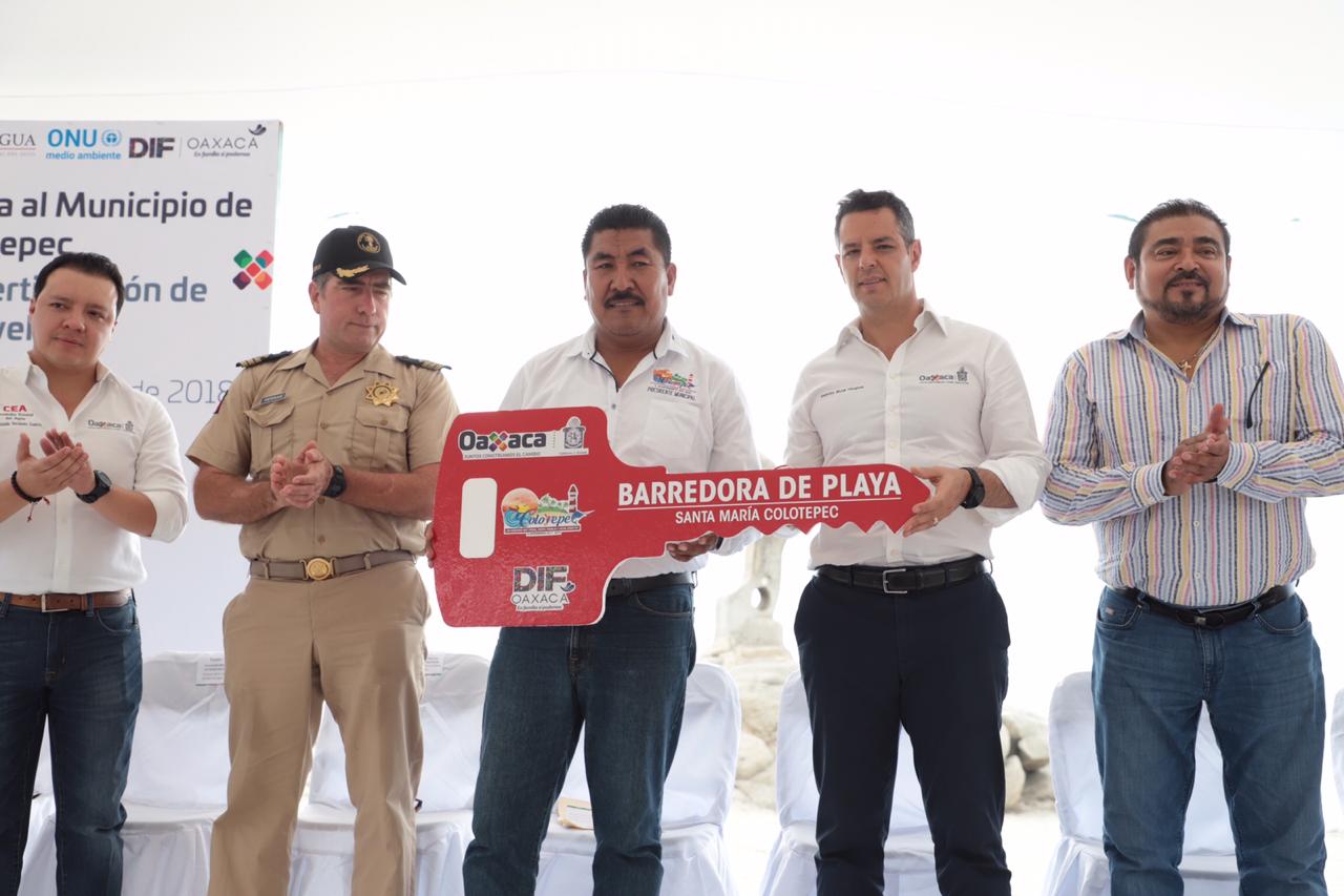 En su oportunidad el presidente municipal de Santa María Colotepec, Valentín Hernández Díaz, agradeció el apoyo del Gobierno de Estado, al aseverar que este apoyo se suma al equipo de salvamento marino que el Gobierno de Oaxaca entregó el año pasado y que ha permitido garantizar la seguridad del turismo.