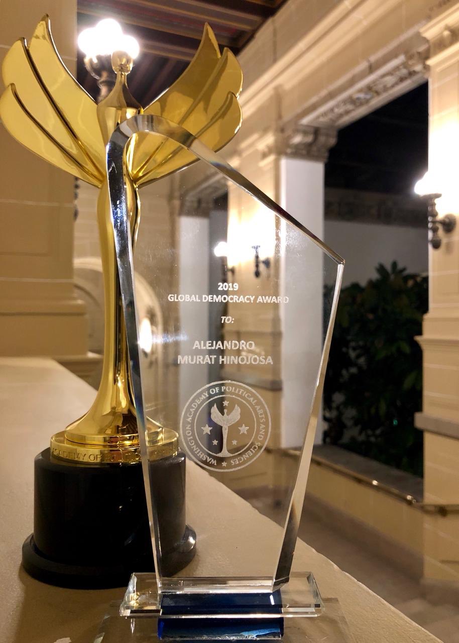 - En el marco de estos galardones, el gobernador Alejandro Murat, fue reconocido por la The Washington Academy of Political Arts and Sciences, por su trabajo en favor de la democracia