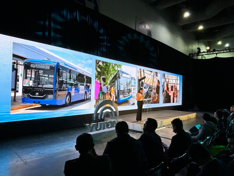 Ciudad de México. 19 de octubre de 2024.- La titular de la Secretaría de Movilidad (Semovi), Claudina de Gyves Mendoza participó en la Expo Yutong México, evento de relevancia nacional e internacional en el que se presentó la nueva tecnología híbrida DMT+.