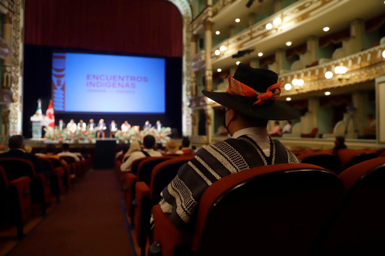 En el evento realizado en el Teatro Macedonio Alcalá, el Mandatario oaxaqueño dio la bienvenida a todas y todos los artistas y mencionó que este encuentro servirá para garantizar a los pueblos indígenas el derecho de conservar, enriquecer y difundir su identidad, así como su patrimonio cultural y lingüístico.