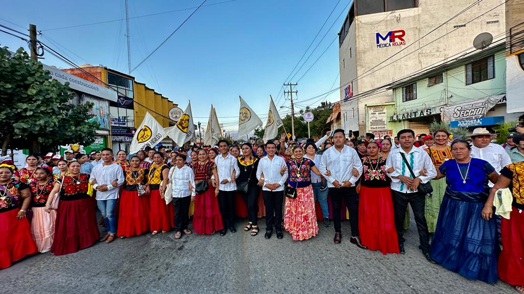 El dirigente estatal de FUCO Gherardy Orozco Martínez, y militantes de la organización arroparon a la doctora Claudia Sheinbaum, en toda el recorrido festivo que llenó de color, música y alegría las calles de Oaxaca.