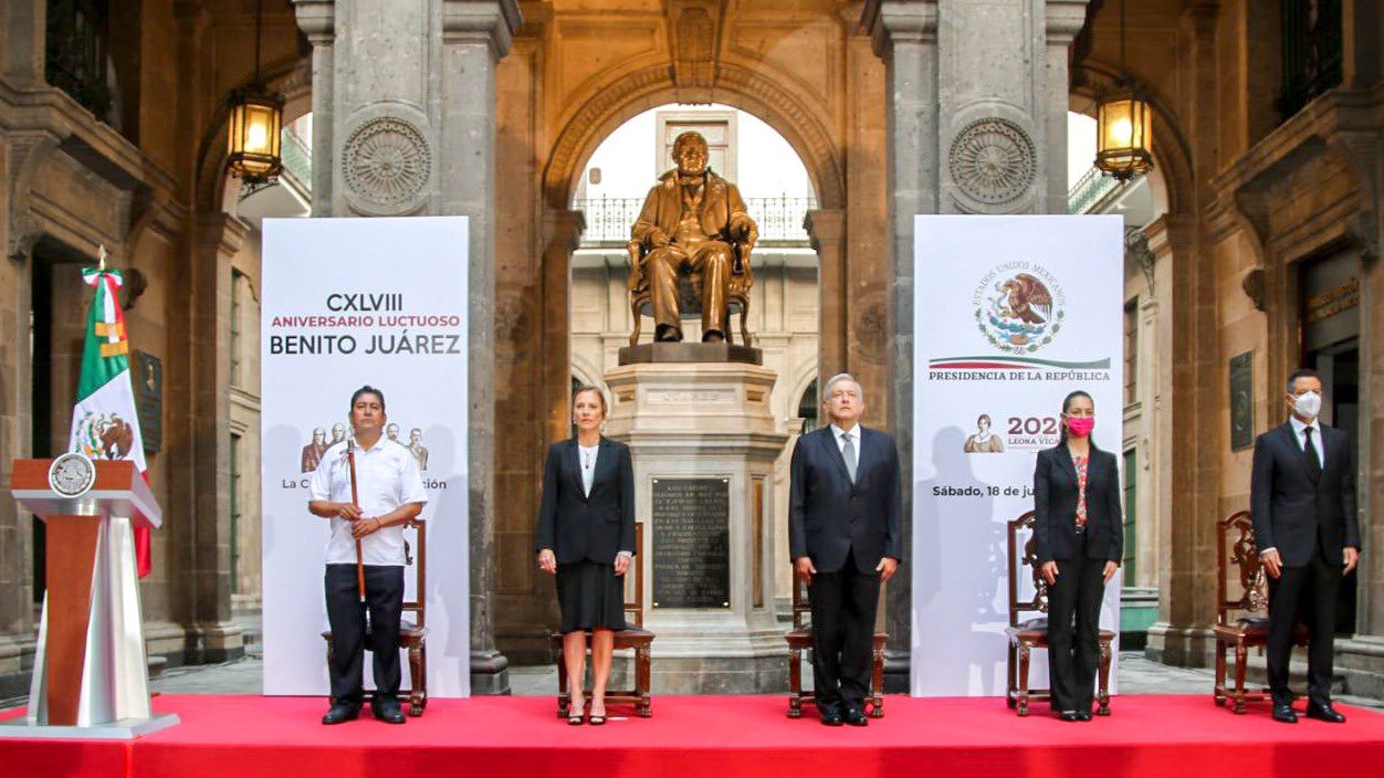 Ciudad de México. 18 de julio de 2020. El gobernador Alejandro Murat Hinojosa asistió a la ceremonia con motivo del 148 Aniversario Luctuoso del Licenciado Benito Juárez García, encabezado en Palacio Nacional por el presidente de México, Andrés Manuel López Obrador.