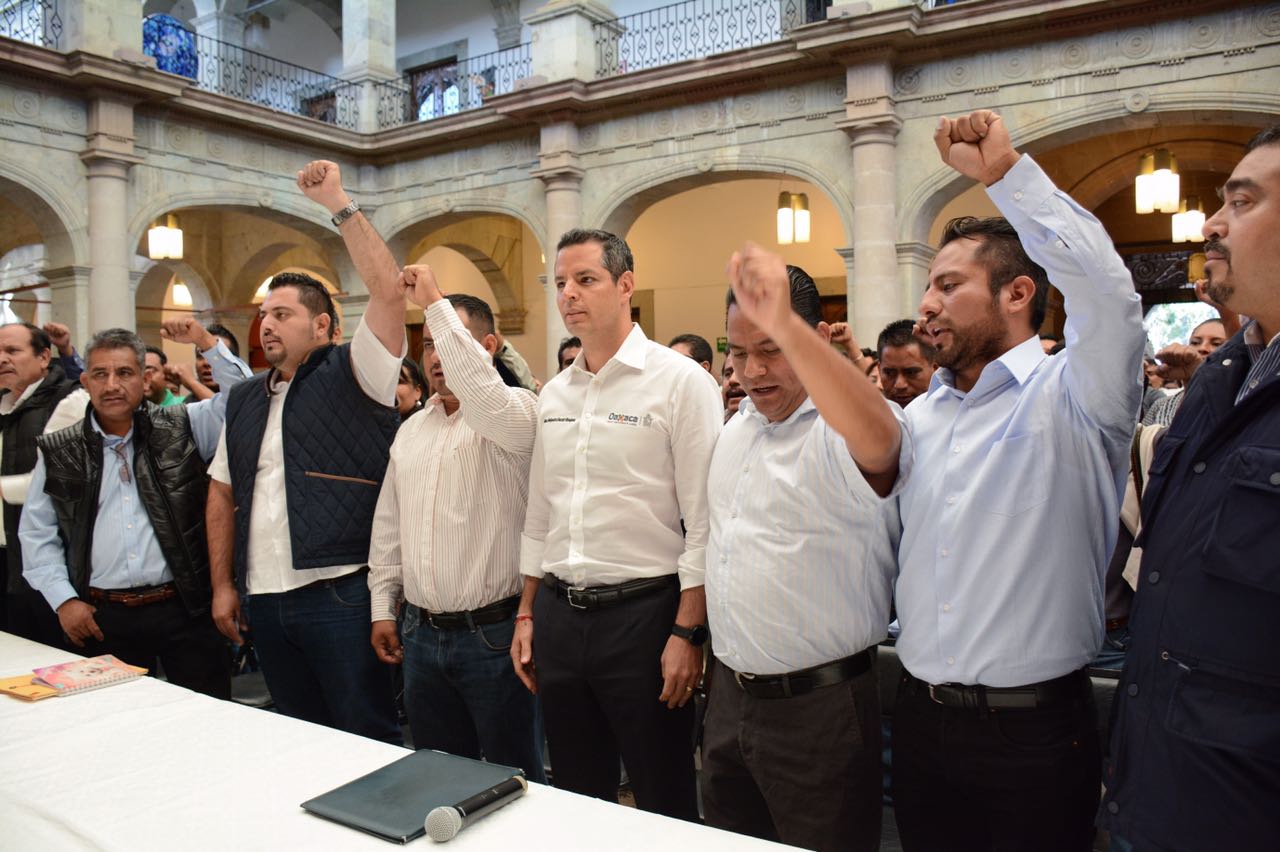“Mi Gobierno ve en el diálogo permanente, respetuoso y serio el mejor instrumento para la transformación que exige el pueblo de Oaxaca, y que el Gobierno al que represento está listo para encabezar”, afirmó, en compañía del Secretario General de Gobierno, Alejandro Avilés Álvarez; del Director General del Instituto Estatal de Educación Pública de Oaxaca, Germán Cervantes Ayala; y del Delegado en Oaxaca de la Secretaría de Educación Pública, Hermenegildo Velásquez Ayala.