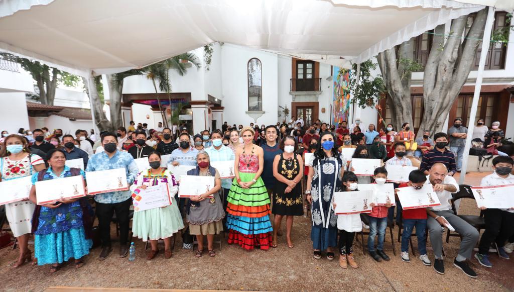 Por lo anterior, y en un ambiente de alegría, unidad y solidaridad, la presidenta honoraria del Sistema DIF Oaxaca, Ivette Morán de Murat, en compañía del Director General de esta institución social, Christian Holm Rodríguez, de la Directora General del Fondo Nacional del Fomento para las Artesanías, Emma Yanez Rízo, de la Secretaria de las Culturas y Artes de Oaxaca, Karla Verónica Villacaña Quevedo y de la Directora General del Instituto Oaxaqueño de las Artesanías, Nadia Clímaco Ortega; entregaron el XXII Premio Estatal de Arte Popular «Benito Juárez» 2022, al maestro artesano Boris de Jesús García Ildefonso.