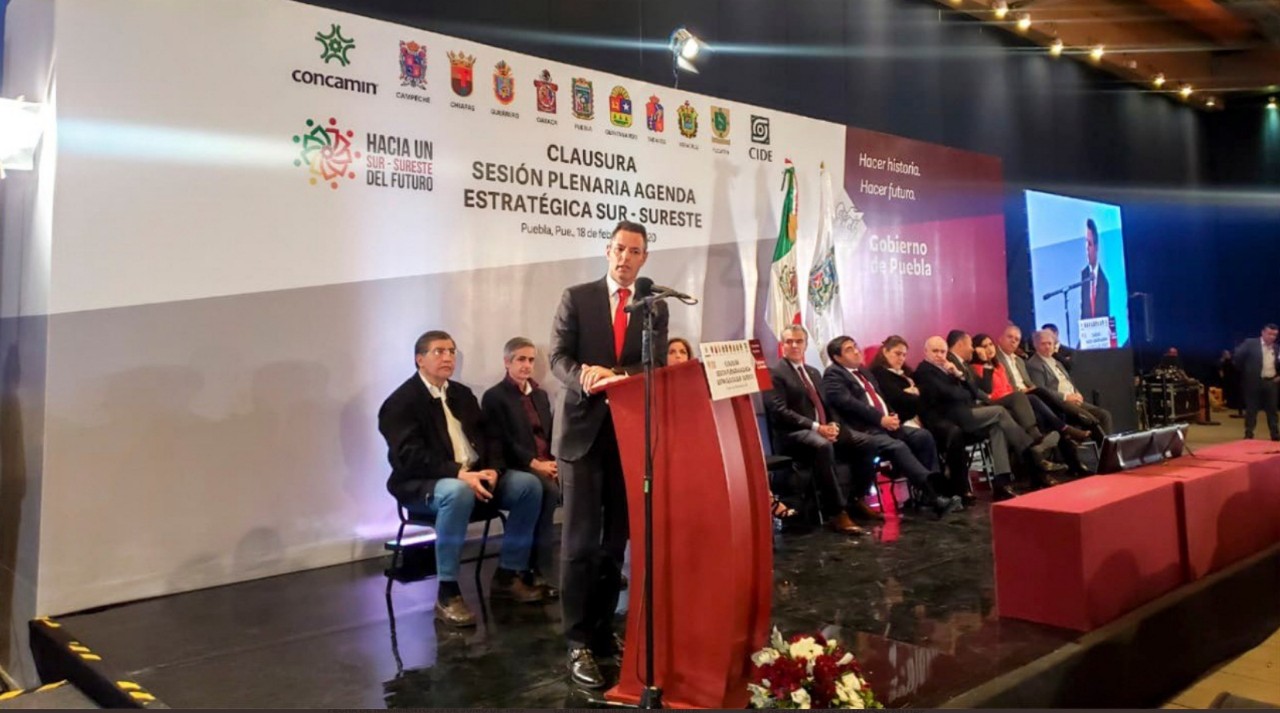 Puebla, Puebla. 18 de febrero de 2020. El gobernador Alejandro Murat Hinojosa refrendó el compromiso de su gobierno para seguir impulsando acciones concretas que fortalezcan el Sureste del país, a través de la suma de esfuerzos entre los gobiernos y la iniciativa privada.