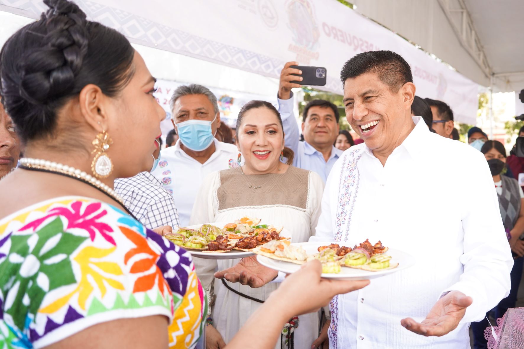 Durante su recorrido por el tianguis, el Mandatario Estatal degustó de los platillos regionales más tradicionales de los pueblos pesqueros y acuicultores, como camarón, ostión y diversas variedades de pescado preparados de las más diversas formas, luego de apreciar la danza del “Pez espada”, presentada por la Regiduría de Cultura del municipio de San Mateo del Mar.