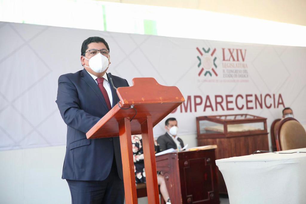 San Raymundo Jalpan, Oax. 27 de enero de 2021. “Hoy Oaxaca tiene Gobernabilidad y Paz Social porque la vocación de éste Gobierno para la solución de la Conflictiva Social, es y será siempre a través del diálogo respetuoso y la voluntad política apoyada en la Ley”, destacó el secretario general de Gobierno (Segego), Francisco Javier García López, al comparecer ante integrantes de la Comisión Permanente de Gobernación y Asuntos Agrarios, y de Fortalecimiento y Asuntos Municipales de la LXIV Legislatura del Congreso del Estado.