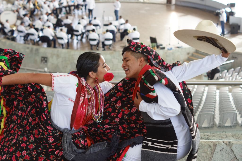 El escenario se abrió para los bailarines de la Danza de la Pluma de San Bartolo Coyotepec en la región de los Valles Centrales y le siguieron las y los integrantes de la delegación de la Heroica Ciudad de Tlaxiaco para deleitar a la audiencia con los sones y jarabes que se ejecutan en la región Mixteca.