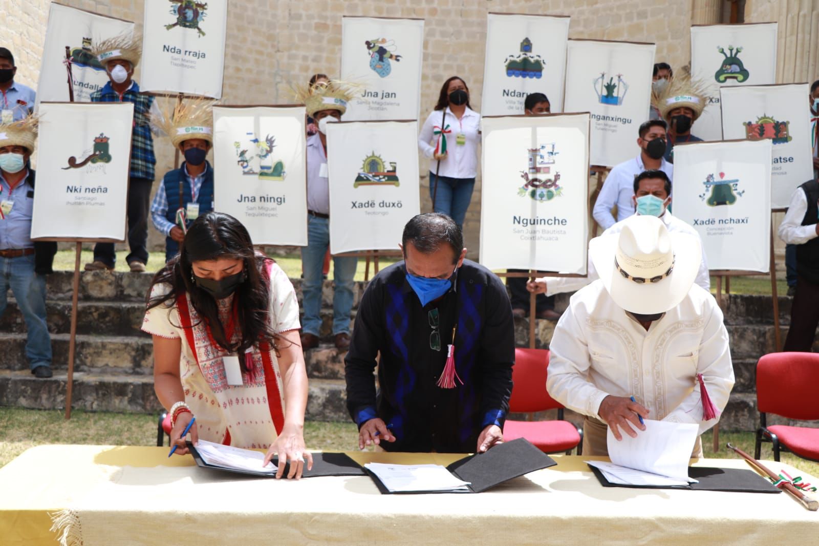 Con el objeto de preservar, revitalizar y desarrollar la identidad cultural y lingüística de la nación chocholteca -Ngigua/Ngiba-, la Secretaria firmó el convenio de colaboración entre la Sepia, el Inali y autoridades municipales de los 19 municipios chocholtecos, siendo el primer convenio histórico en el estado en suscribirse en esta lengua materna.