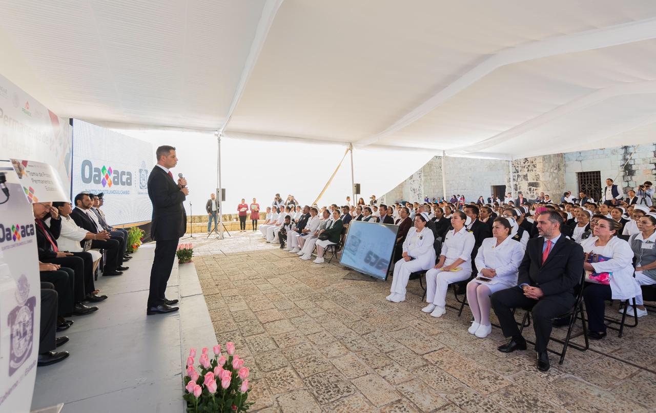 “El Gobierno de Oaxaca les reconoce el cariño, la alegría y la convicción con que se desempeñan al servicio de las personas y de lo más preciado que tiene el ser humano que es su salud”, afirmó Murat Hinojosa al tiempo de refrendar el compromiso de su gobierno para seguir trabajando por un sistema de salud que este a la altura de los retos que demandan los tiempos actuales.