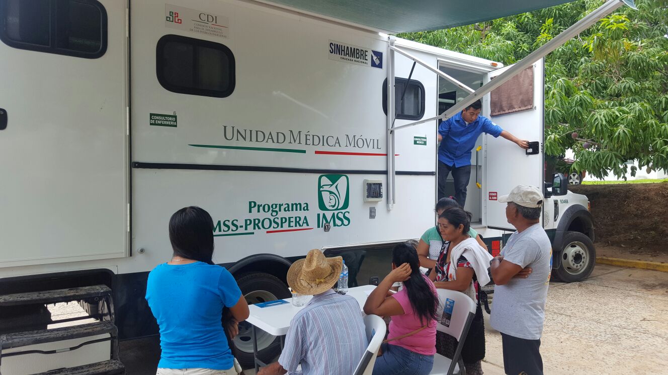 Instruidos por el titular de la Sedesoh, Raúl Bolaños Cacho Cué, en Pinotepa Nacional y Puerto Escondido, instalaron Unidades Móviles en coordinación con el Instituto Mexicano del Seguro Social (IMSS) y el programa Prospera.