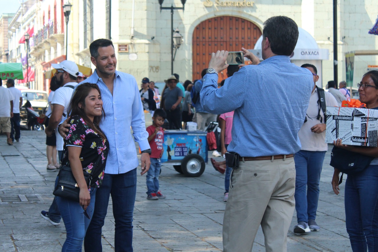 - El Gobernador recorrió el Centro Histórico de Oaxaca donde convivió con locales y visitantes nacionales y extranjeros